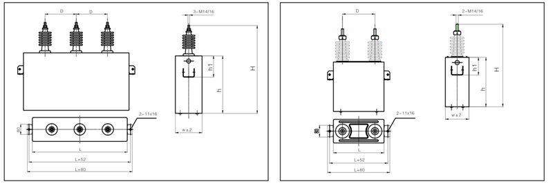 ●损耗角正切值:膜纸复合介质tanδ≤0.08%、全膜介质tanδ≤0.05%;