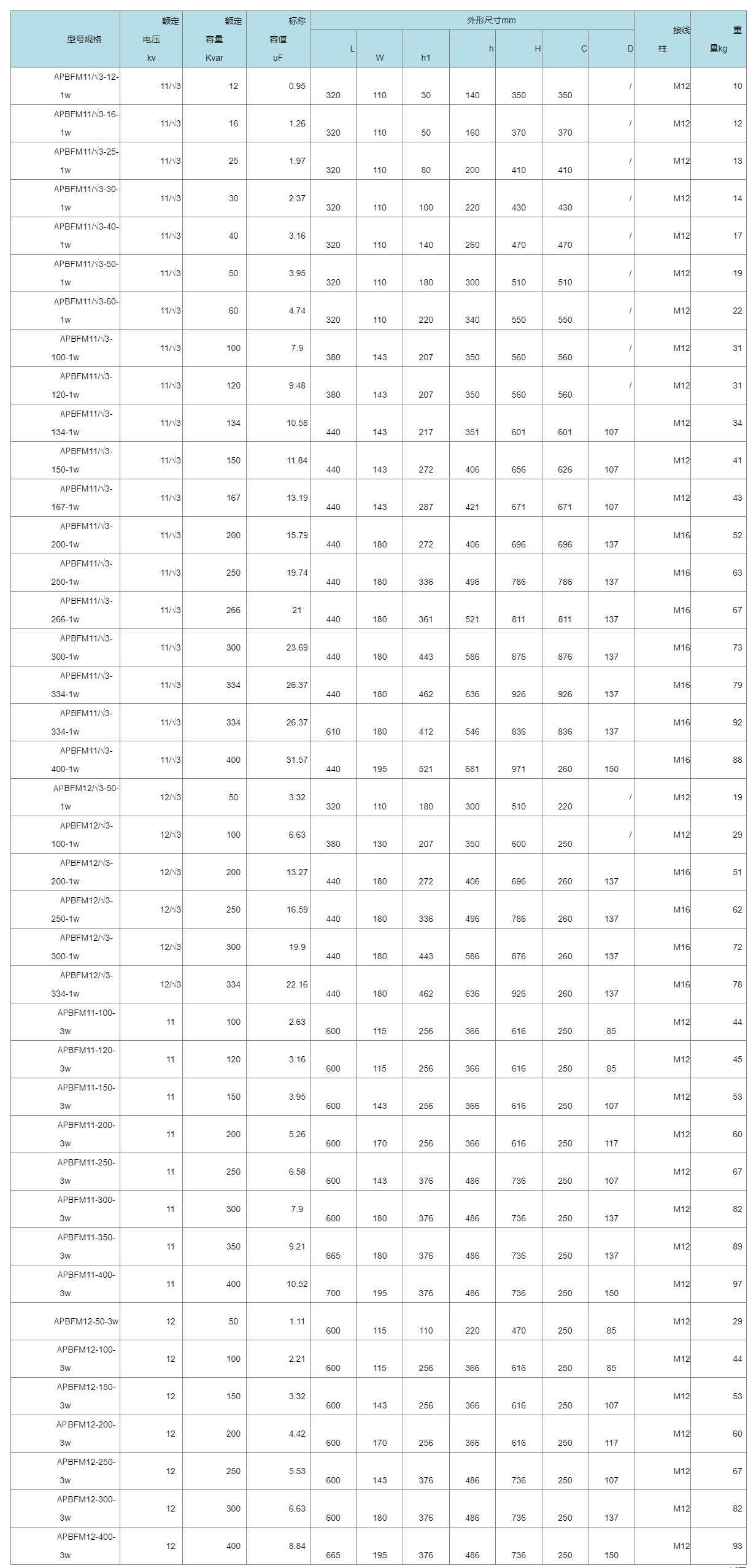 ●稳定容量:30~334kvar,其他电压等级和容量可特殊定货。