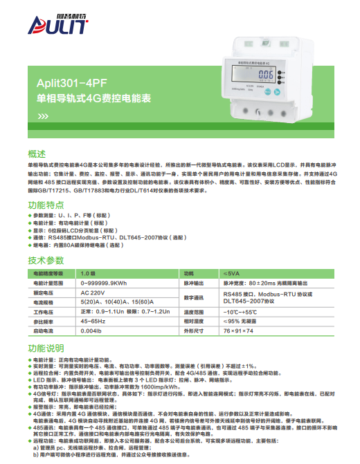 下一篇:Aplit301-2PF单相导轨式4G费控电能表
