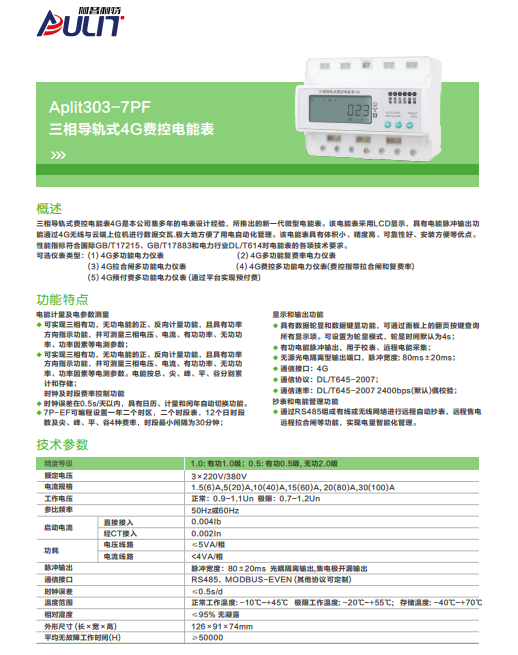 下一篇:Aplit301-4PF单相导轨式4G费控电能表